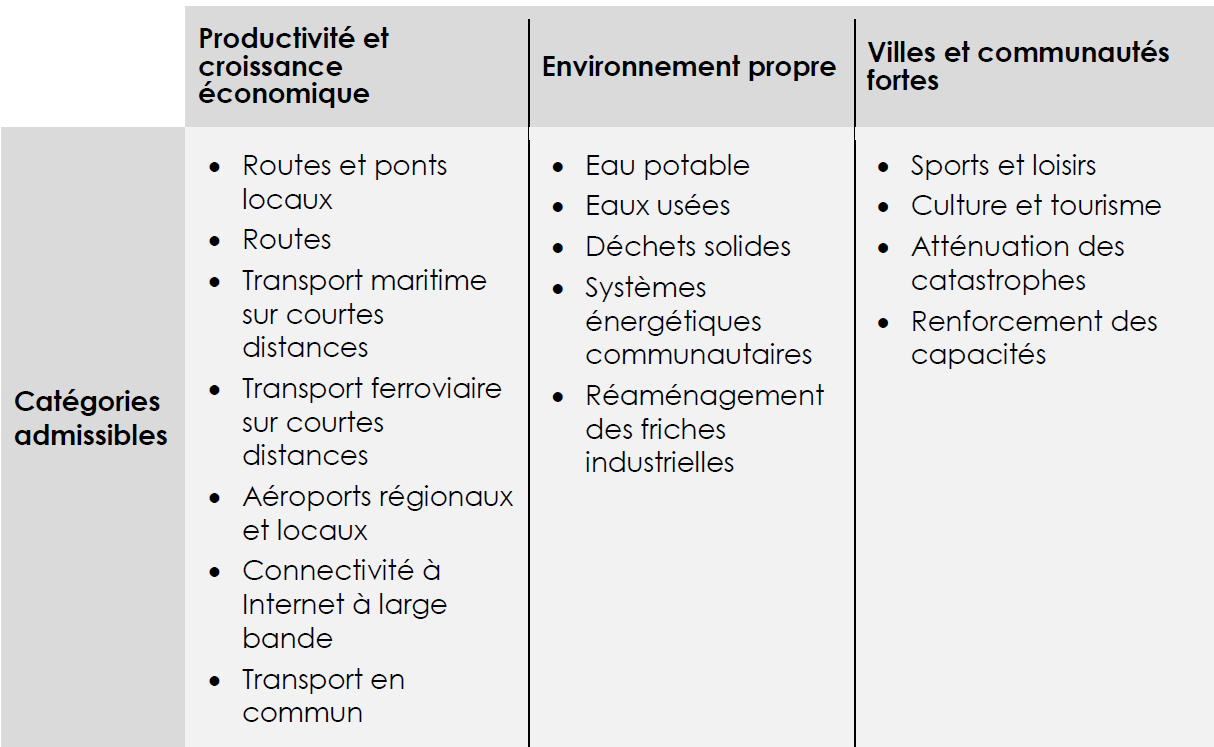Le gouvernement reconnaît également que les petites administrations font face à des contraintes. En améliorant le programme Investir dans le Canada, le gouvernement soutiendra les efforts de planification des administrations visant l’avancement des projets d’énergie propre et d’autres priorités en matière d’infrastructures dans les petites communautés et dans les territoires.