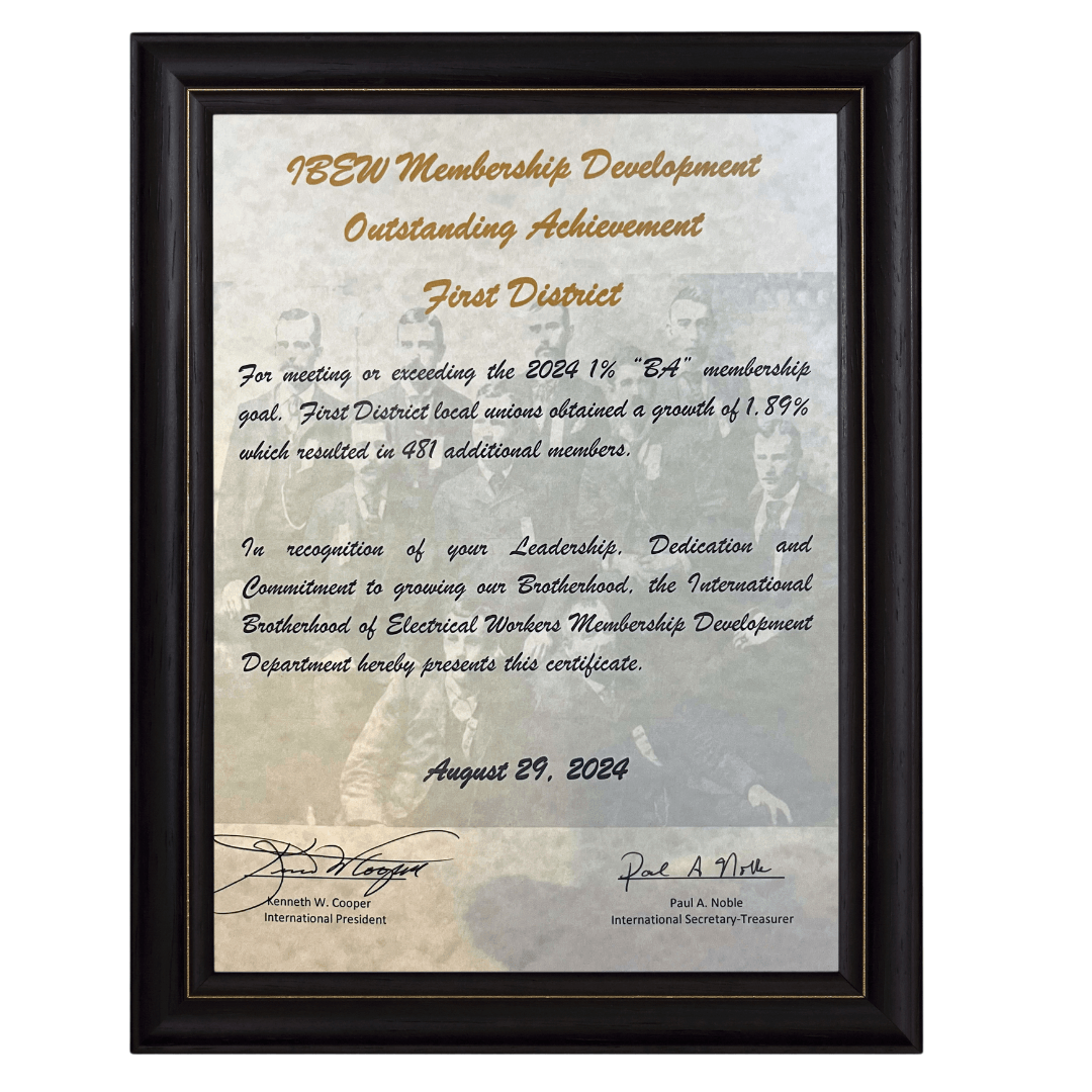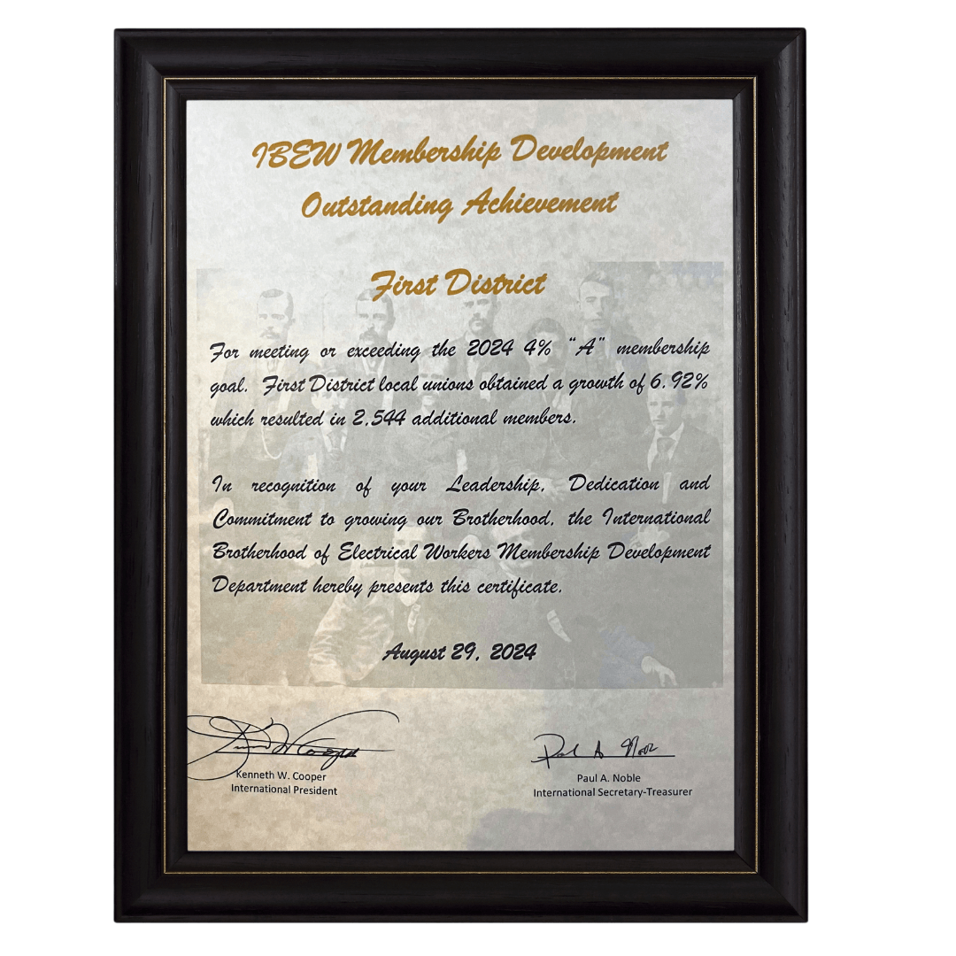 La Conférence sur la croissance de l’affiliation syndicale 2024 de la FIOE qui a eu lieu à Chicago a marqué une étape monumentale pour le Premier District de la FIOE. Grâce à l’appui des leaders des sections locales de la FIOE et de leurs équipes respectives, nous sommes fiers de vous annoncer que le Premier District de la FIOE s’est classé en PREMIER parmi les 11 Districts pour la croissance totale de de ses membres A et BA dans la dernière année (août 2023 à août 2024). LA FIOE Canada a ajouté plus de 2 900 nouveaux membres de la FIOE.