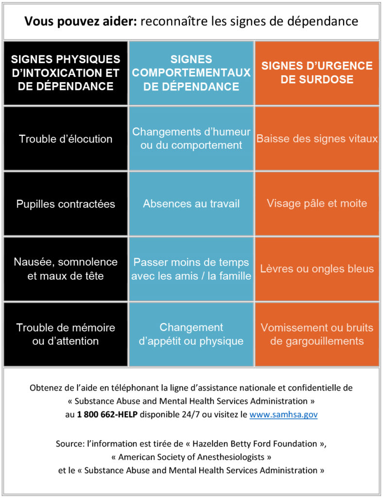 Watson nous informe que la plupart des locaux ont des programmes d’aide aux personnels qui offrent de l’aide à ceux qui ont un problème lié à l’abus de substance. Cependant, plusieurs de ces programmes couvrent seulement six visites, et tout dépend de la disponibilité, un membre doit peut-être s’absenter du travail pour s’y rendre.